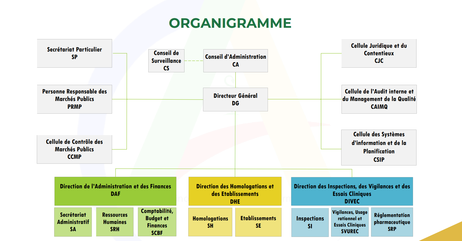 La Direction de l'Administration et des Finances (DAF) assure la gestion des ressources humaines, financières, matérielles et des services généraux au sein de l'Agence.