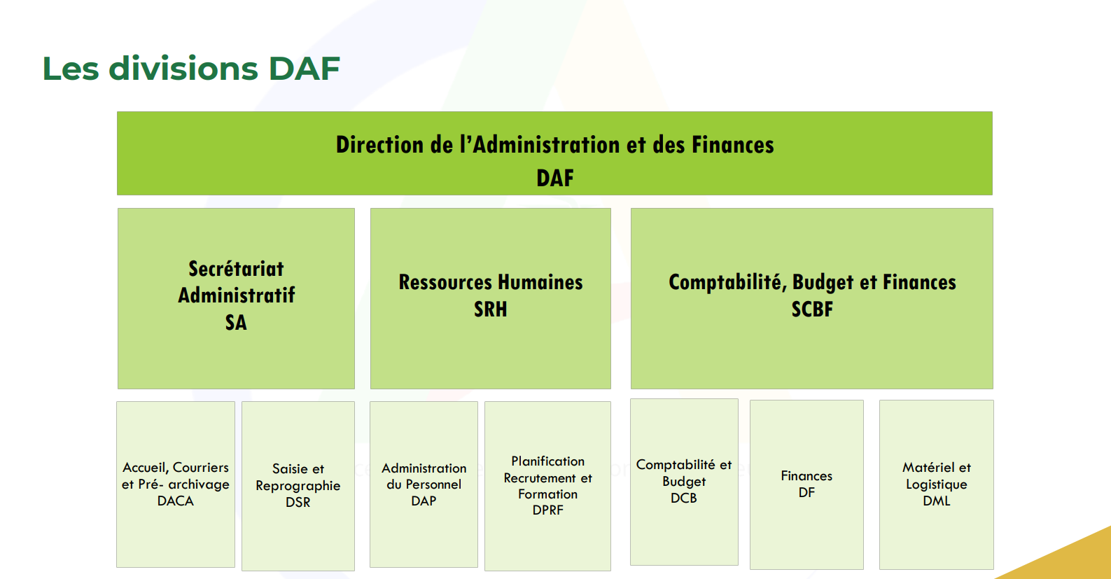 La Direction de l'Administration et des Finances (DAF)